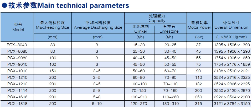 PCX系列破碎機(jī)引進(jìn)德國先進(jìn)技術(shù),經(jīng)過優(yōu)化設(shè)計的結(jié)構(gòu)改進(jìn),而設(shè)計制造的新一代高效細(xì)破碎。合理的多腔破碎室組合,新型的便捷雙調(diào)節(jié)結(jié)構(gòu),可以保證85%的出料粒度在3mm以下,產(chǎn)品粒度細(xì)而均勻。便捷的檢修維護(hù)裝置,使調(diào)換錘頭、篩板更加便捷。磨損件均采用新型優(yōu)質(zhì)多元素高鉻合金耐磨材料制造,保證了錘頭,襯板優(yōu)越的耐磨性和耐沖擊性。該系列破碎機(jī)運(yùn)轉(zhuǎn)平穩(wěn)、低塵、低電耗,因此PCX系列高效細(xì)隨機(jī)與常規(guī)破碎機(jī)相比有著明顯的優(yōu)勢。